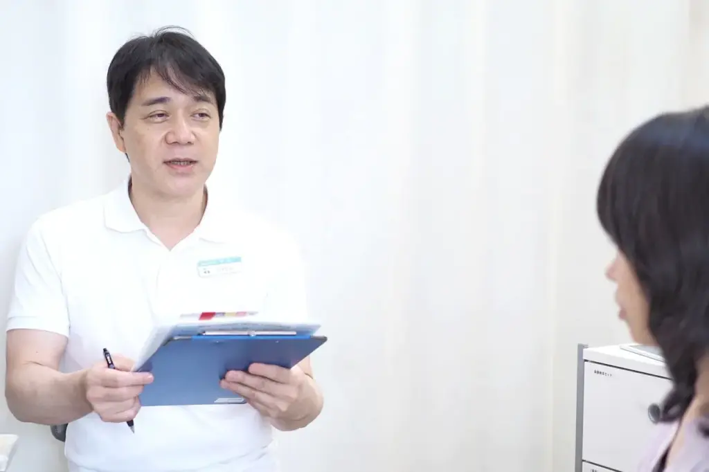 初診カウンセリングを行います。スタッフが院内の案内やお願い事、患者さまのご希望等をお聞きします。