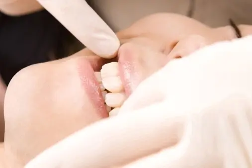 医院では、インプラントをきれいに保つためのクリーニングを実施。その際には細かな粒子と水を吹き付けて汚れを落とす「エアフロー」による洗浄を行います。